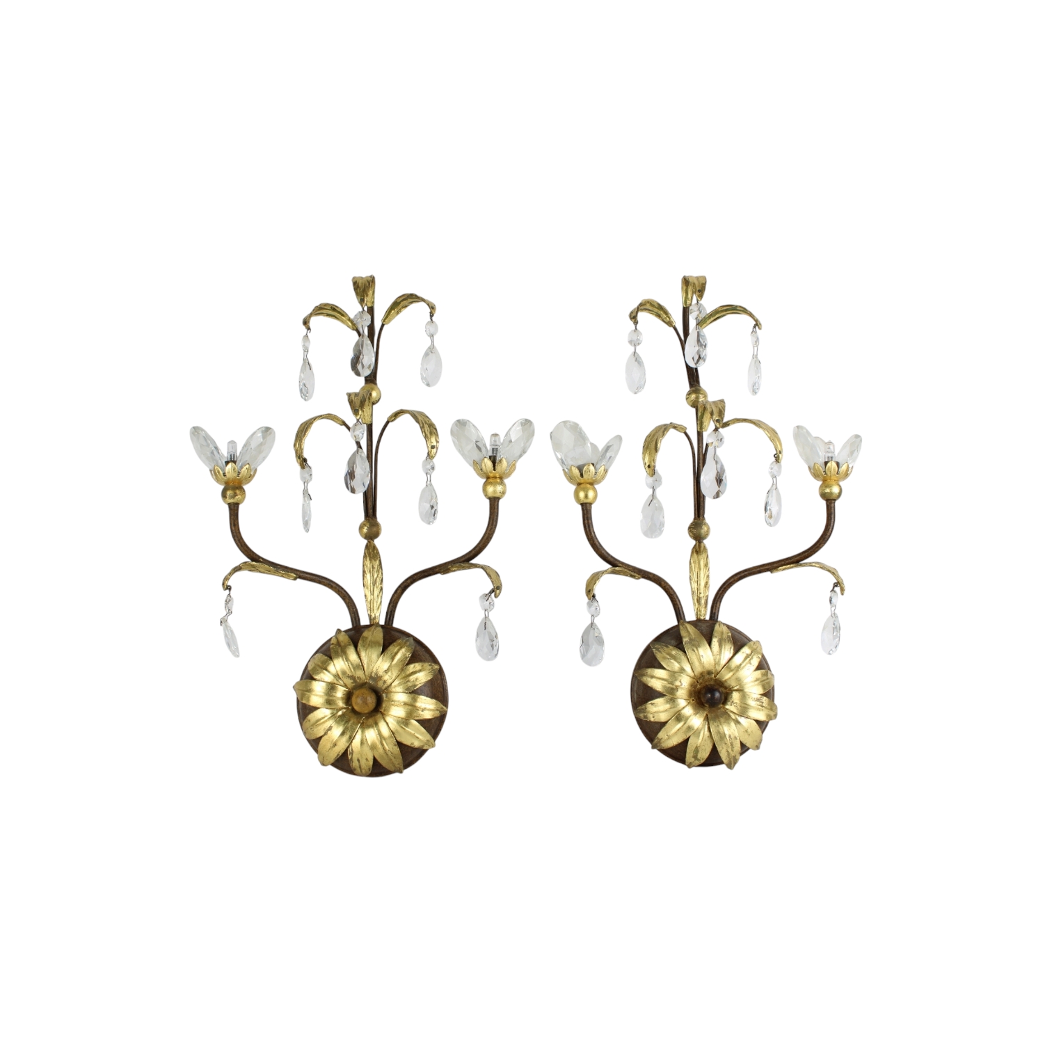 LAMPADARIO E DUE APPLIQUES in ferro e cristallo probabilmente swarosky XX secolo h cm 110 x 60 / h cm 45 x 29