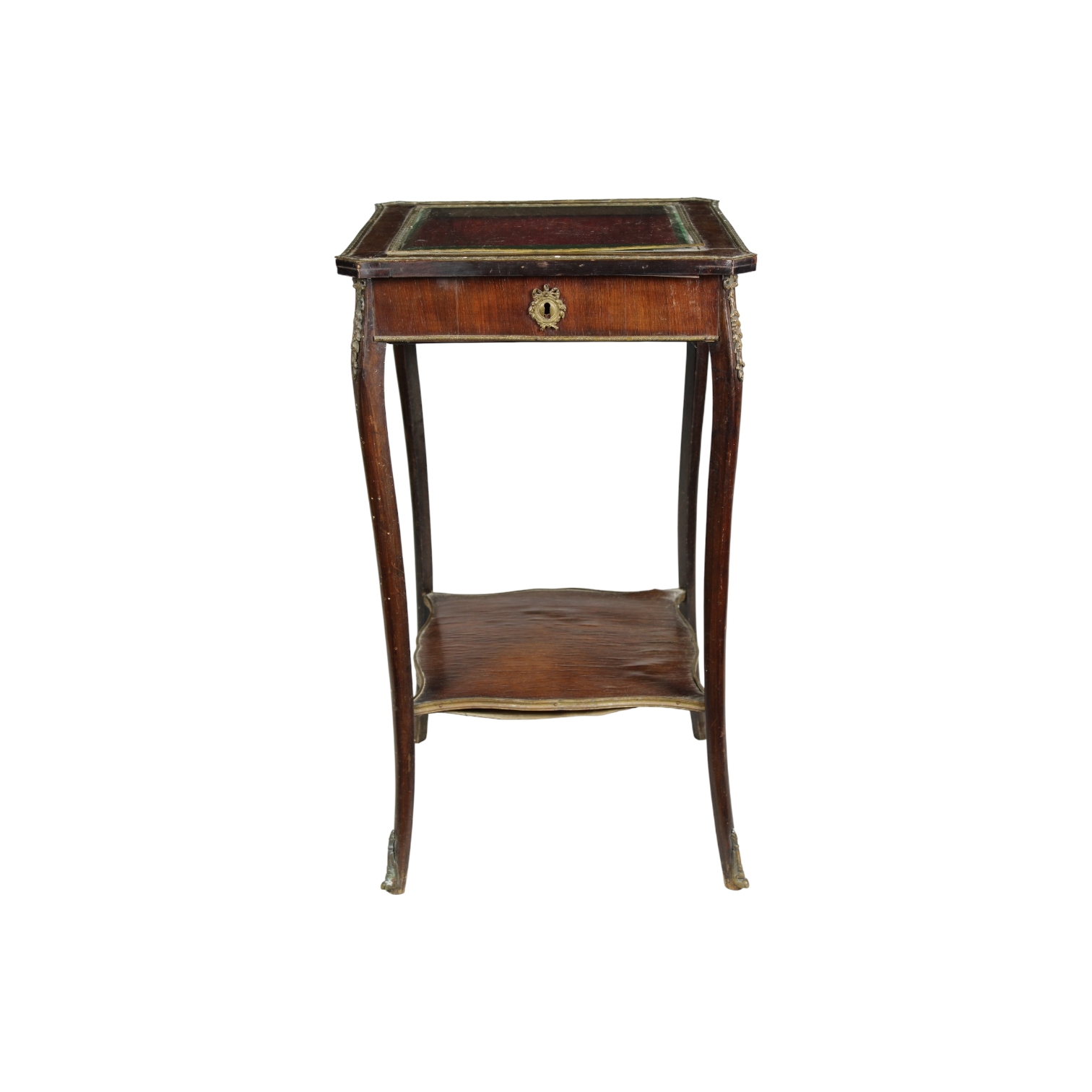 TAVOLINO A BACHECA in legno di noce arricchito da cornici e applicazioni in bronzo finemente intagliato e dorato Francia XIX-XX secolo h cm 75 x 43 x 43