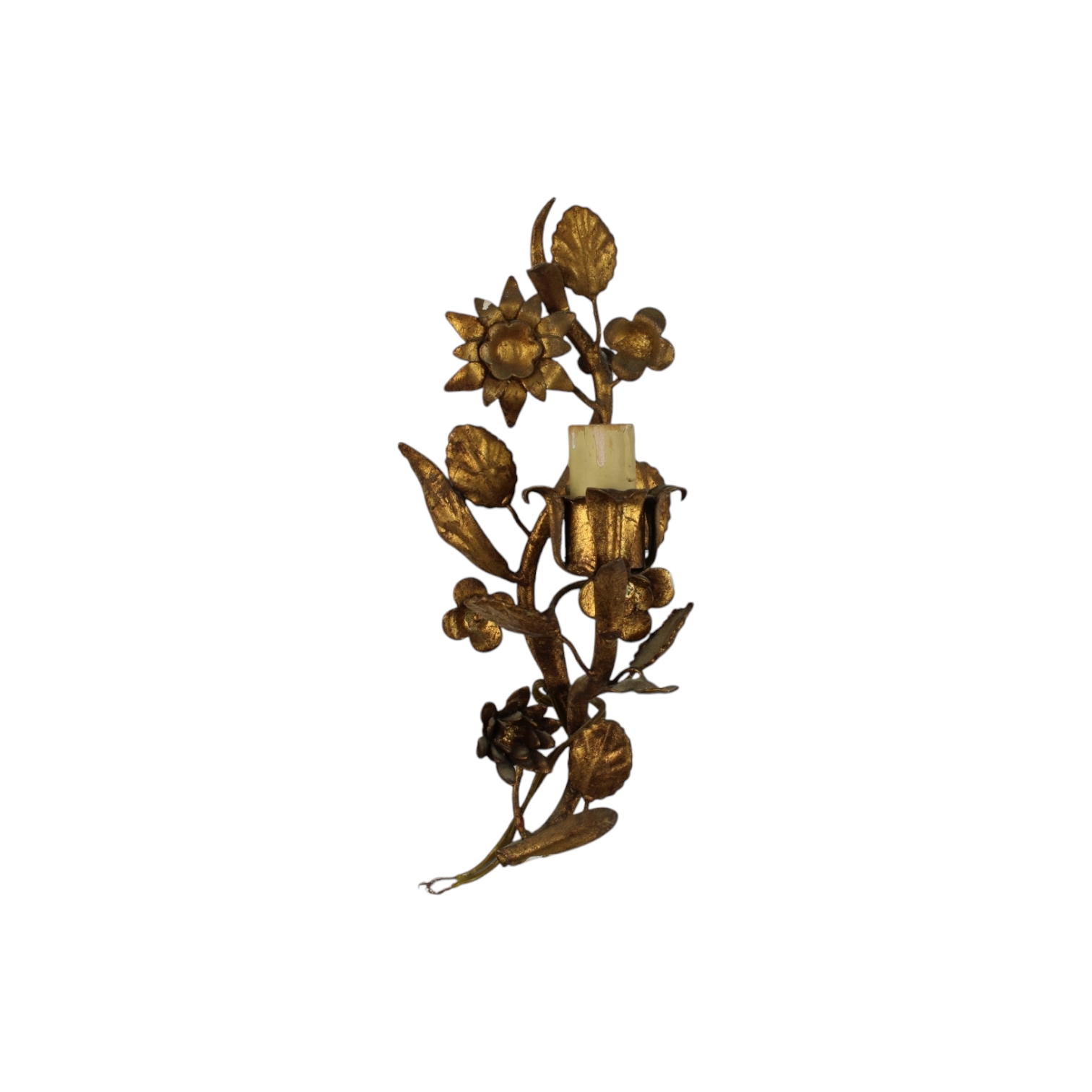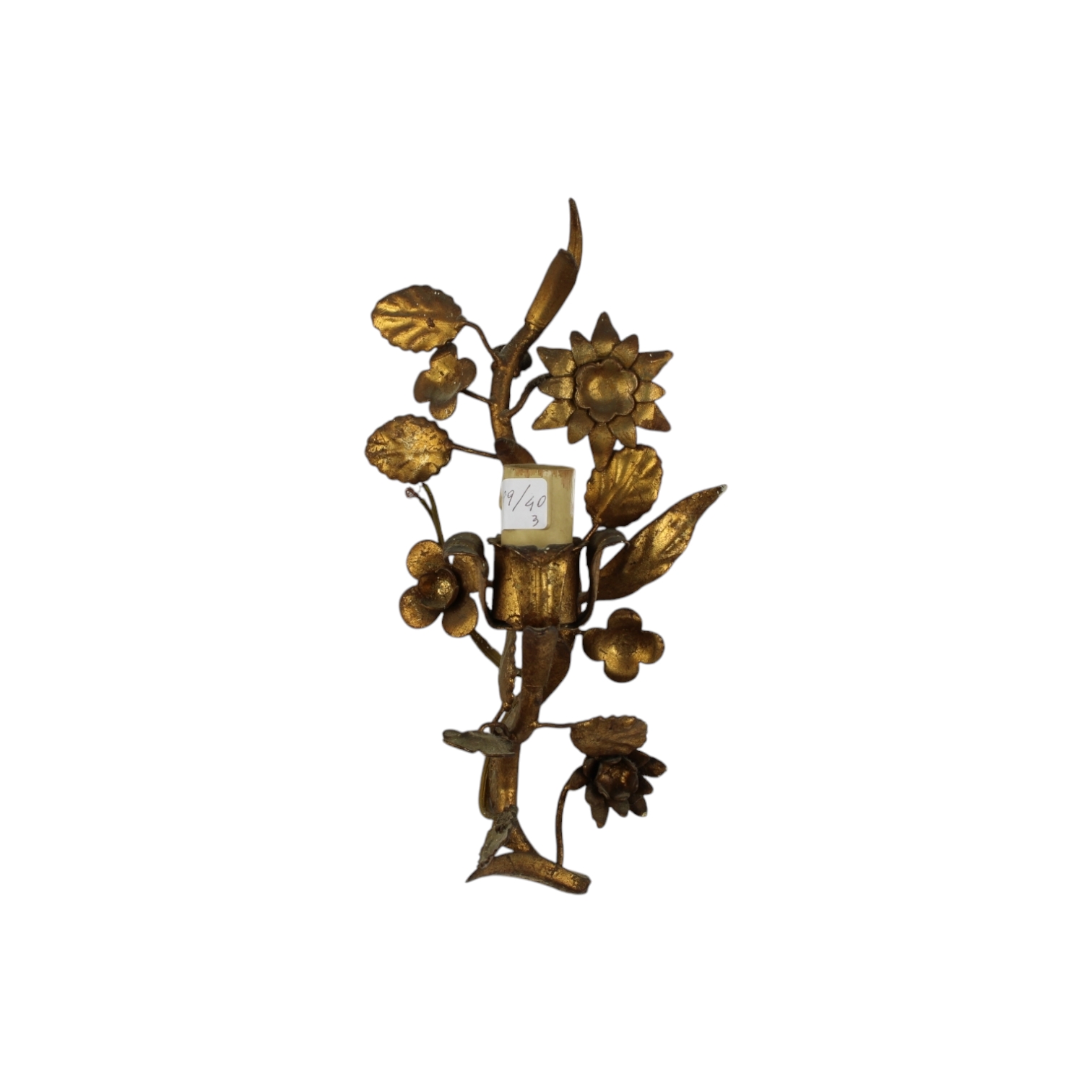 TRE APPLIQUES in ferro dorato ad una luce a motivi floreali Sicilia XX secolo h cm 28 x 12 x 9