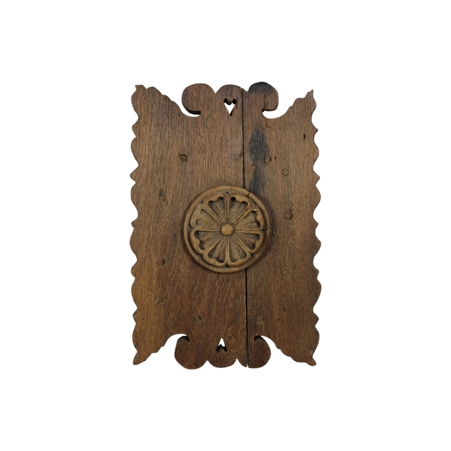 PENSILE PORTA SALE in legno di castagno manifattura fiamminga XIX secolo h cm 47 x 31 x 17