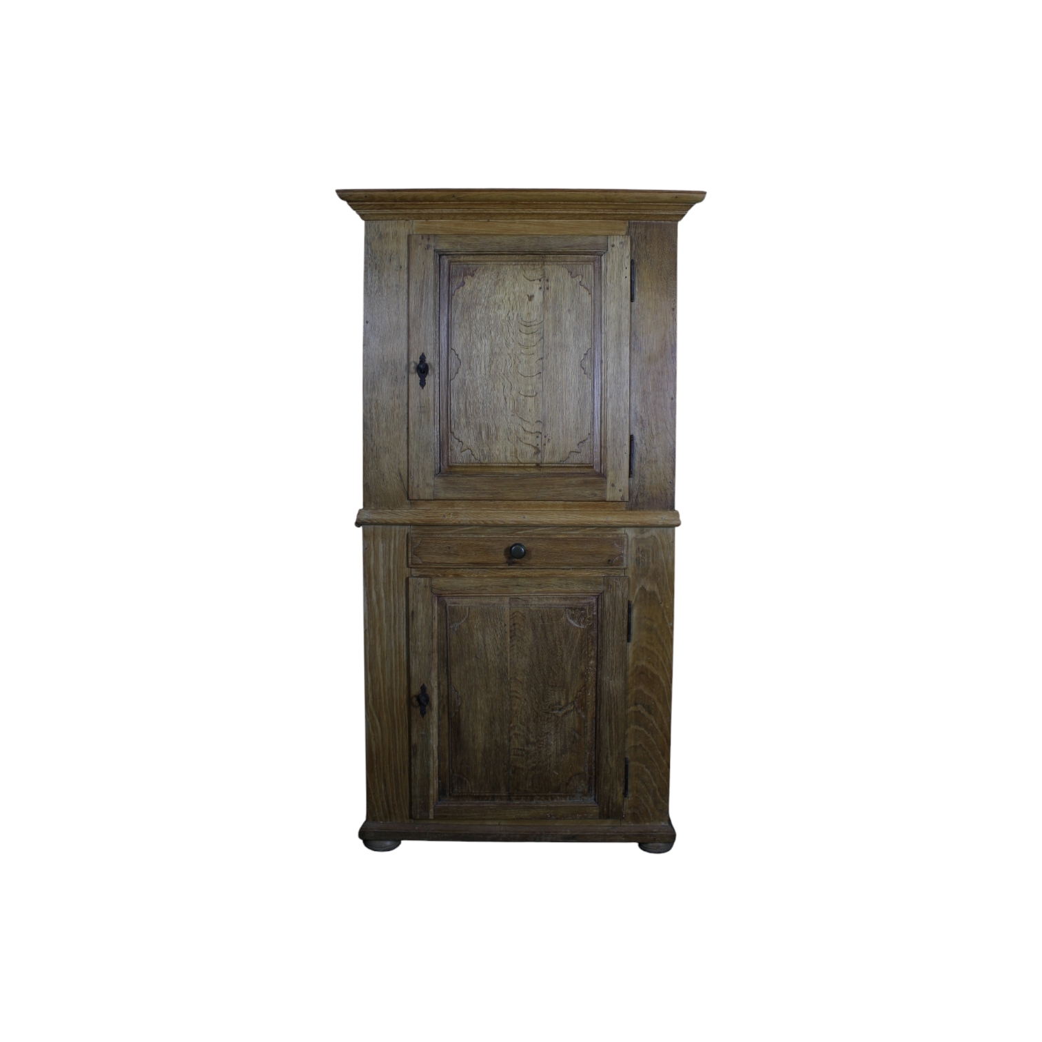 CREDENZA DOPPIOCORPO in legno di castagno a due sportelli e un cassetto maestranze fiamminghe XIX secolo h cm 196 x 105 x 40