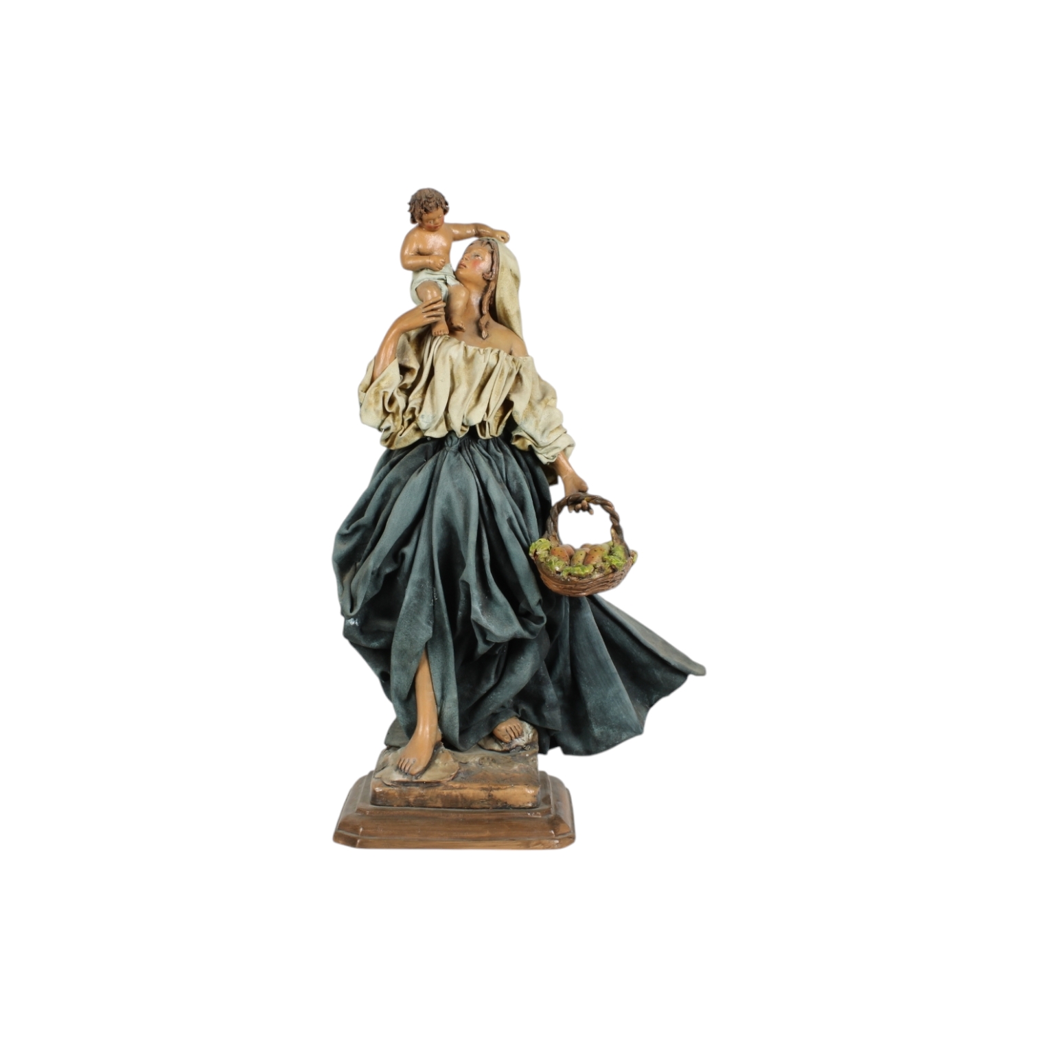 GRUPPO SCULTOREO in terracotta e cartapesta policroma raffigurante donna con bambino, firma non leggibile Sicilia XX secolo h cm 36 x 20 x 12