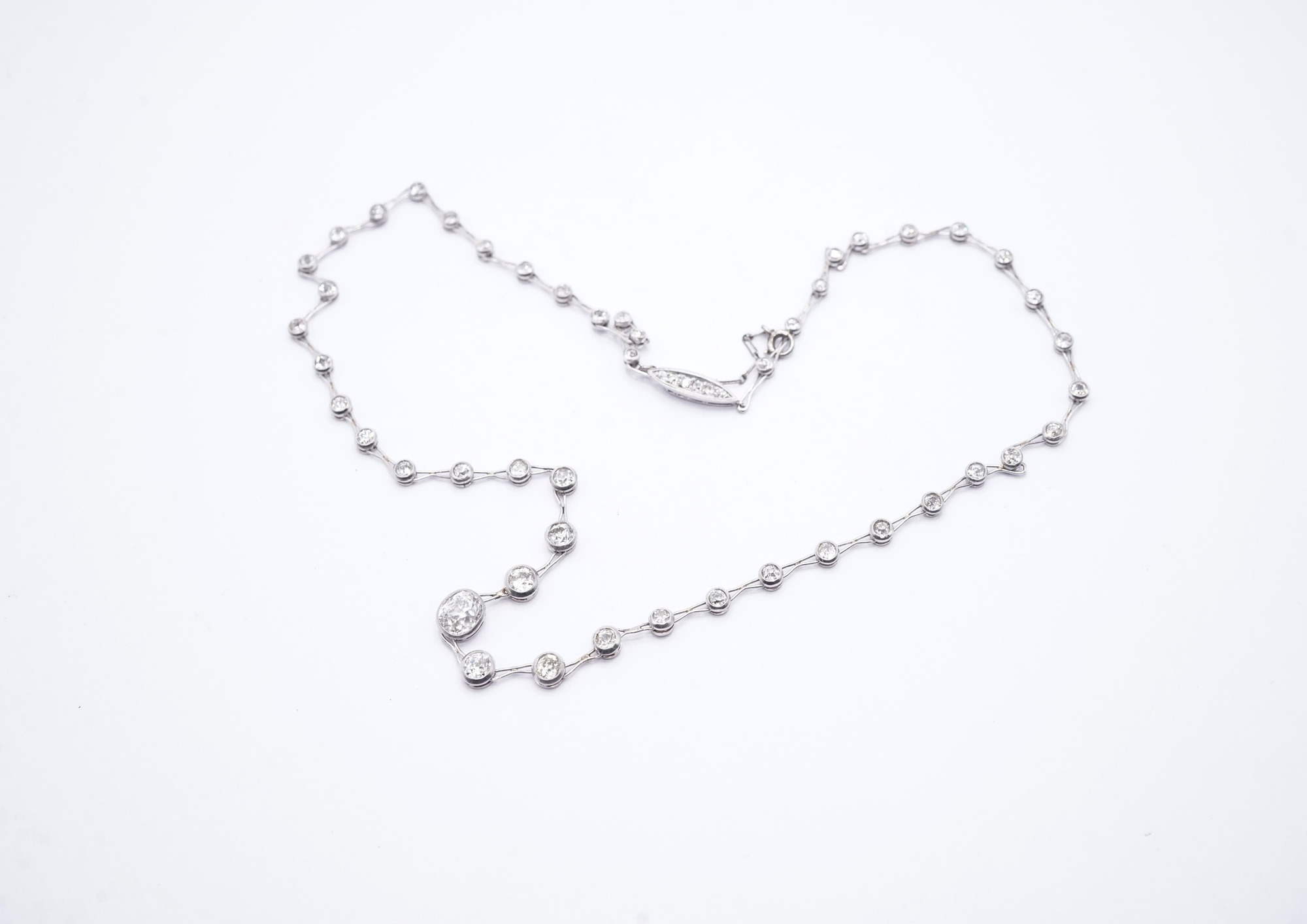 Lotto 7 | RARO LUNGO GIROCOLLO IN PLATINO E DIAMANTI. Inizio XX secolo.