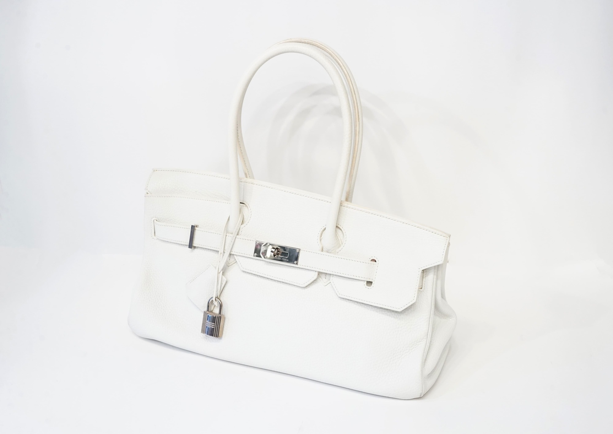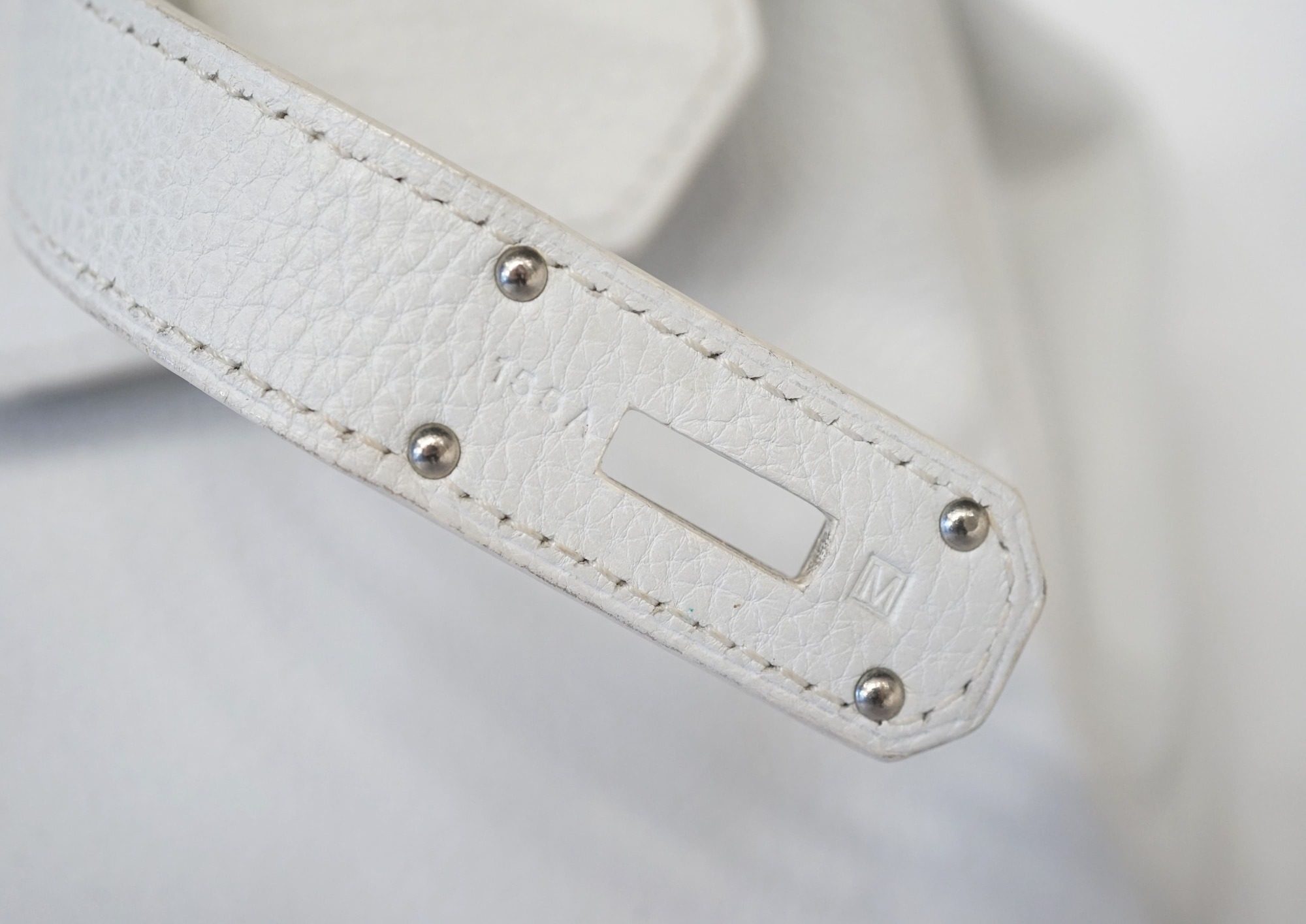 Cm. 40x44x17,5.In pelle bianca. Buone condizioni, lievi segni di usura.