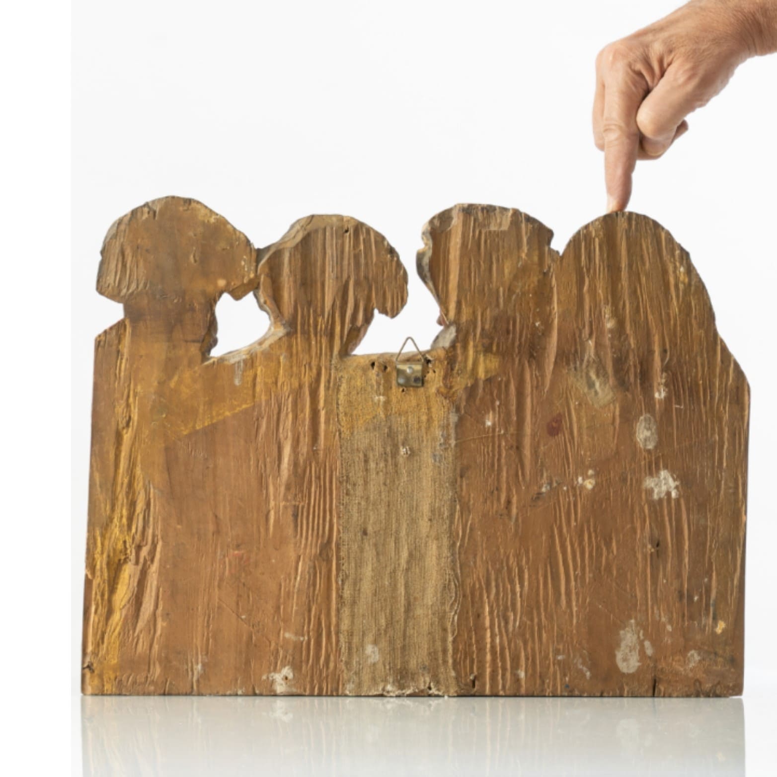 Elemento di predella in legno scolpito, dorato e dipinto in policromia. Realizzato nello stile di Nikolaus Hagenauer.Cm 31x43x3
