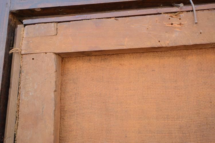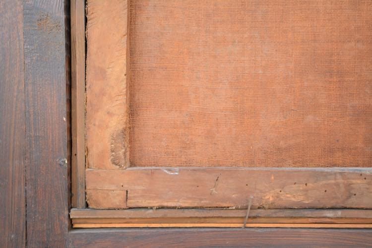 Olio su tela.Cm. 44x34.Con cornice.In base all'indicazione araldica dello stemma nuziale in alto a sinistra e alle fasce intorno all'addome potrebbe essere il figlio di un nobile Aldrovandi e di una Colonna di Paliano.