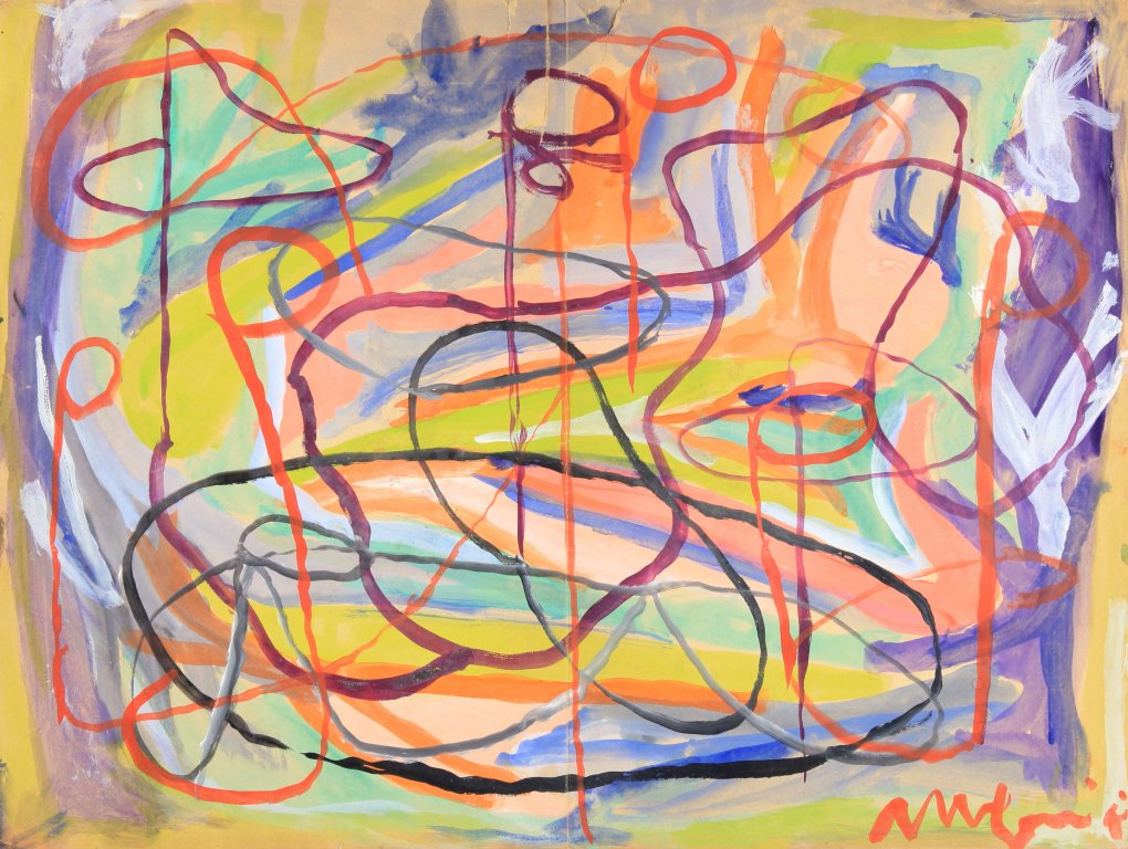 MINO GUERRINI (1927 - 1990) Senza titolo tempera su carta cm 50x66 firmato in basso a destra provenienza: Collezione Gianni Bertini, Sestri Levante (Ge) Untitled tempera on paper 19,7x26 in signed lower right provenance: Gianni Bertini Collection, Sestri Levante (Ge)
