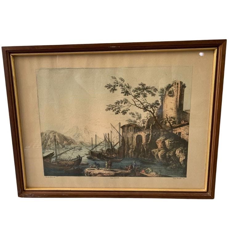 Stampa dal dipinto di Salvator Rosa (Napoli 1615 - Roma 1673), conservato Galleria Palatina, Uffizi, Firenze. Sul margine inferiore sinistro Salvator Rosa, al centro L. Corsi dis. Sul margine inferiore destro A. Parboni inc. Cm. 20,5x36. Con cornice e vetro.