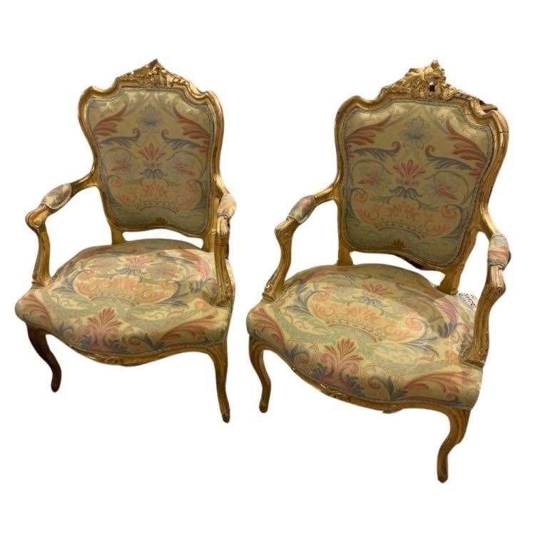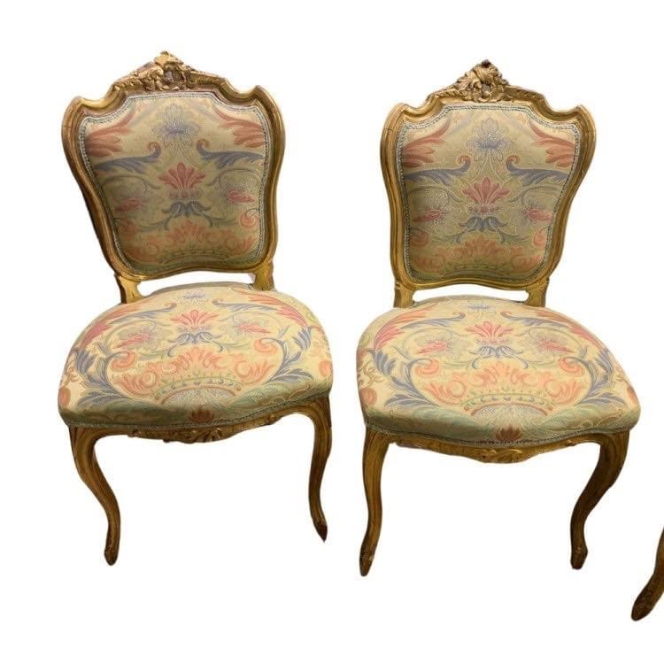 Salotto stile Luigi XV in legno intagliato e dorato, XX secolo.