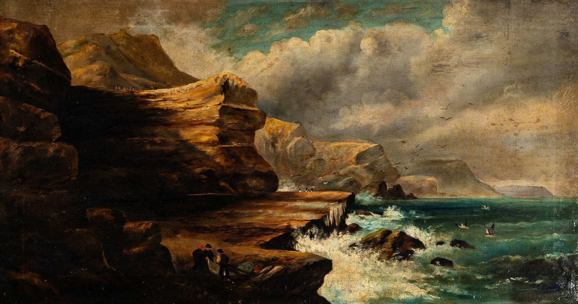 Scuola inglese del secolo XIX - Scogliera con pescatoriOlio su tela48 x 92 cmPROVENIENZA:Collezione privata, Varese