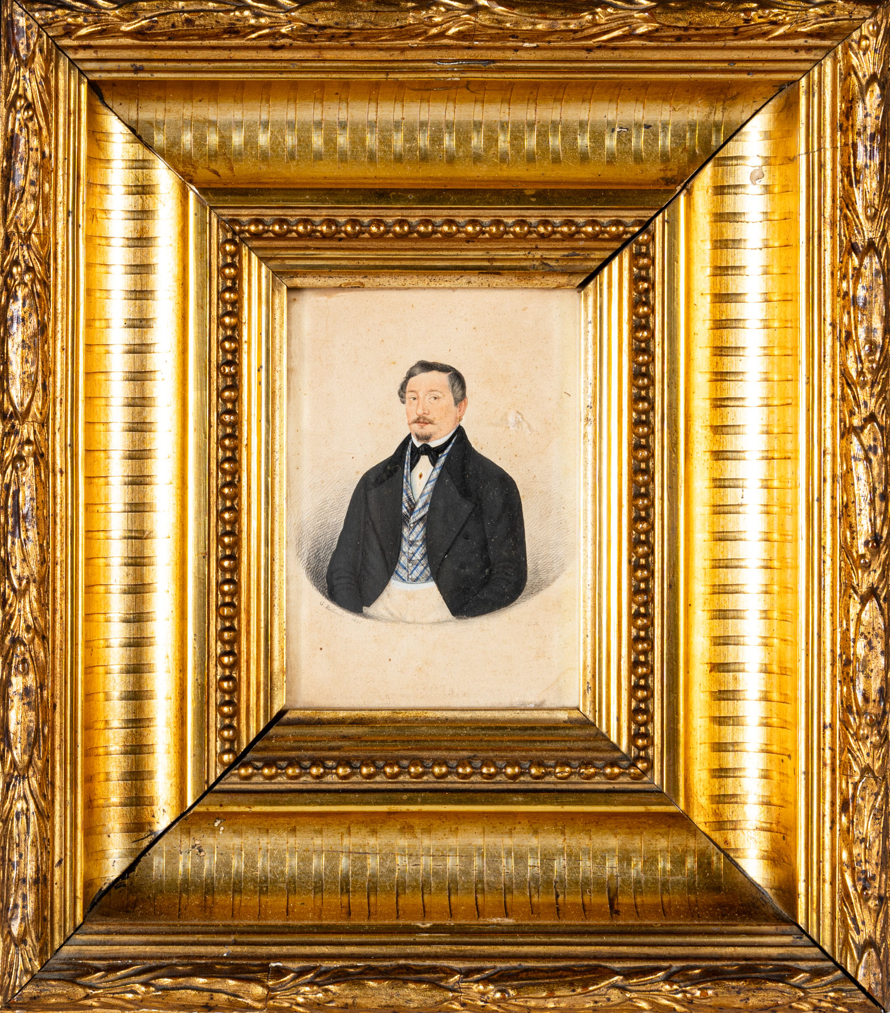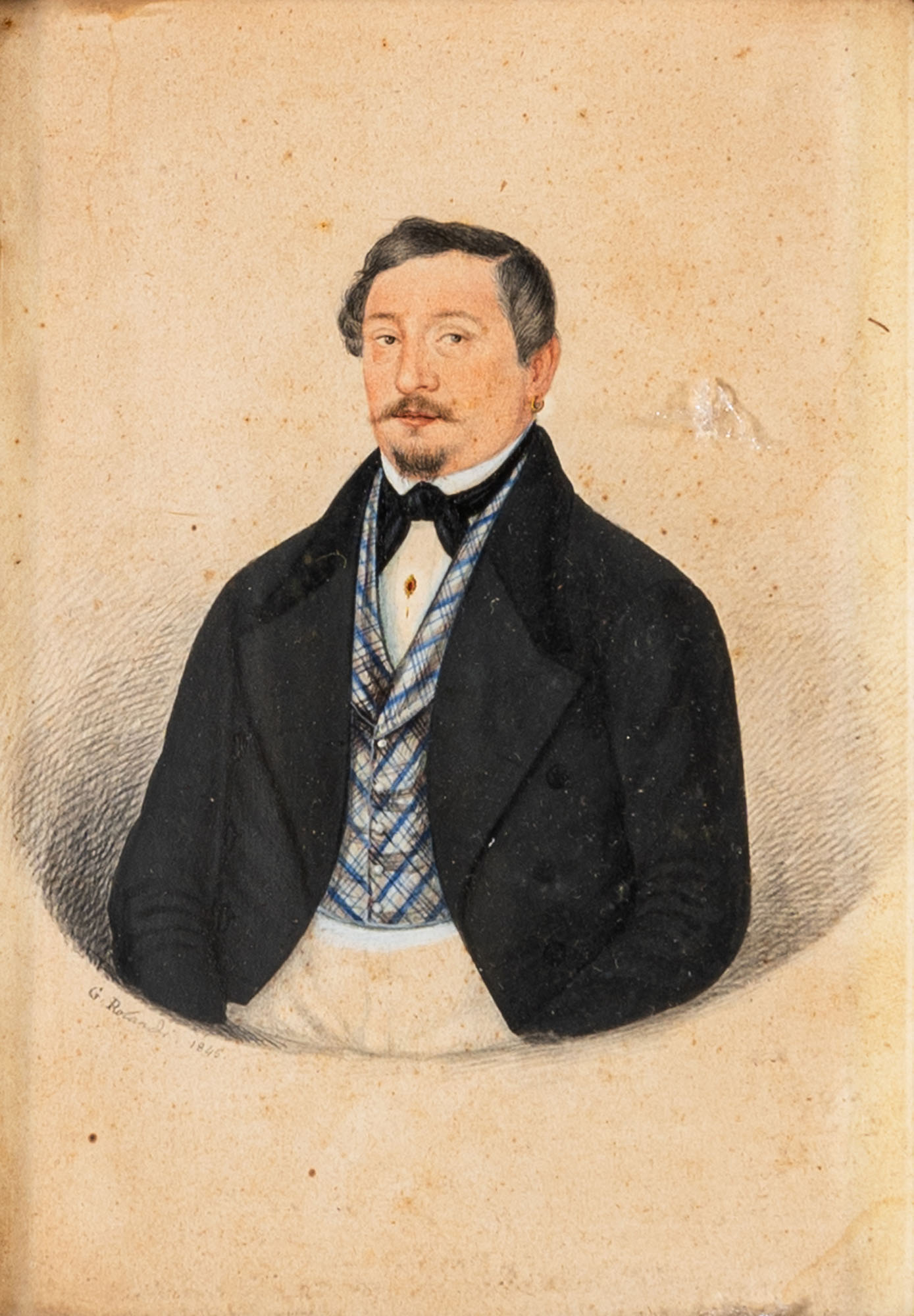 Scuola italiana del secolo XIX - Ritratto di uomoTecnica mista su legno15 x 11,5 cmFirmato e datato Rolandi 1845