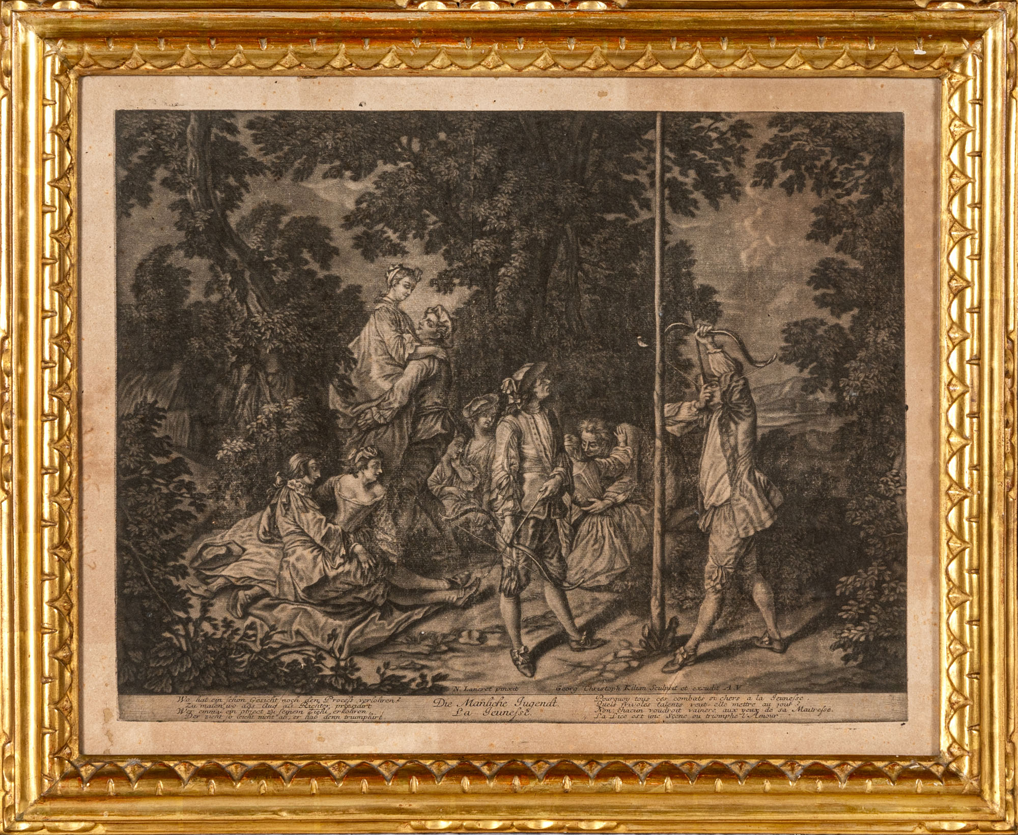 Scuola inglese (?) del secolo XVIII - Scene di giochi (Esterno)Incisione38 x 48 cm (foglio)31 x 43, 5 cm (lastra)