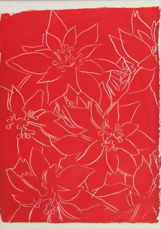 ANDY WARHOL (1928 - 1987) Poinsettias litografia su carta cm 76,2x53,34 timbro Andy Warhol e Fondazione Warhol sul retro n° A144.992 certificato di autentica della Fondazione Warhol provenienza:galleria Soave, Alessandria Poinsettias screenprint on paper inch 30x21 Andy Warhol stamp and Warhol Foundation on the reverse n°A144.992 photo certificate from Warhol Foundation provenance:Soave gallery, Alessandria