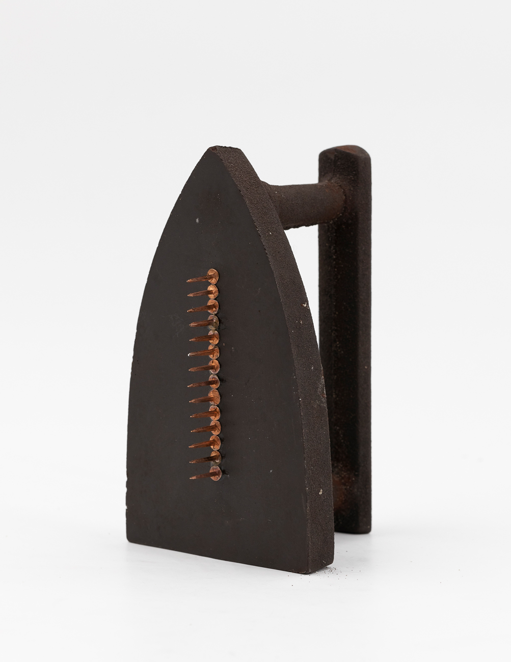 Opera multipla realizzata con ferro da stiro in ghisa e chiodi