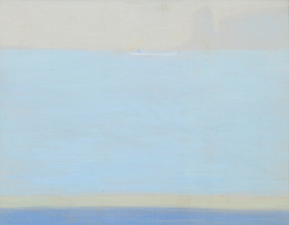 ANTONIO CALDERARA (1903 - 1978) Senza titolo olio su tavola cm 25x31,5 firmato e datato sul retro provenienza: donato dall'artista all'attuale proprietario Untitled oil on board 9,85x12,41 in signed and dated on the reverse provenance: donated by the artist to the current owner