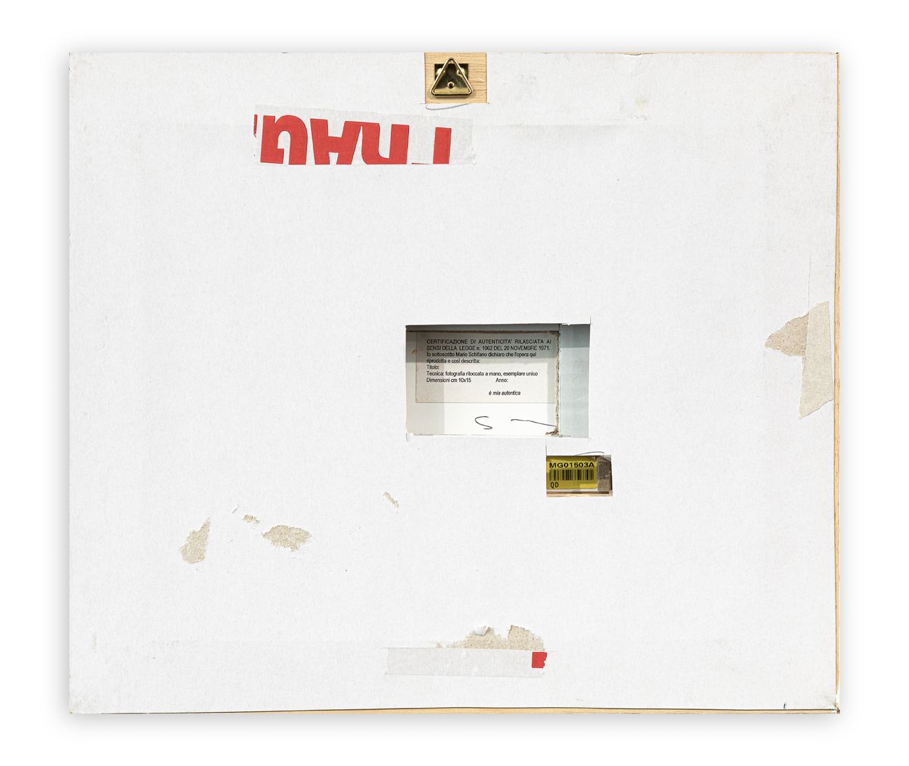 Certificato di autenticità a cura dell'Archivio Generale dell'Opera Pittorica di Mario Schifano - Fondazione Mario Schifano (RM) rilasciato in data 12/06/2007