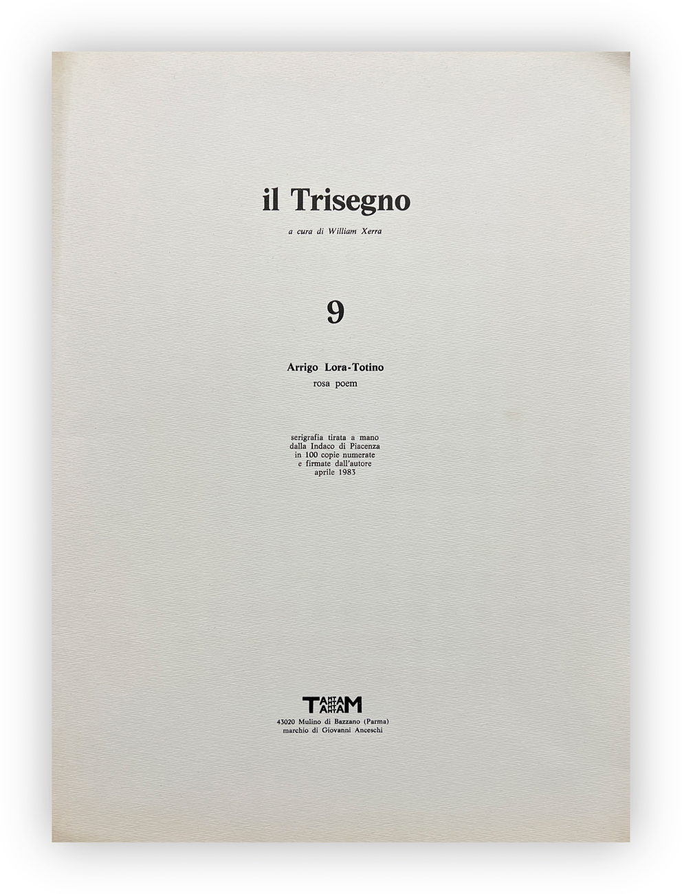Opera senza cornice, edita per la collana 'Il Trisegno' a cura di William Xerra (tirata a mano dalla Indaco di Piacenza)