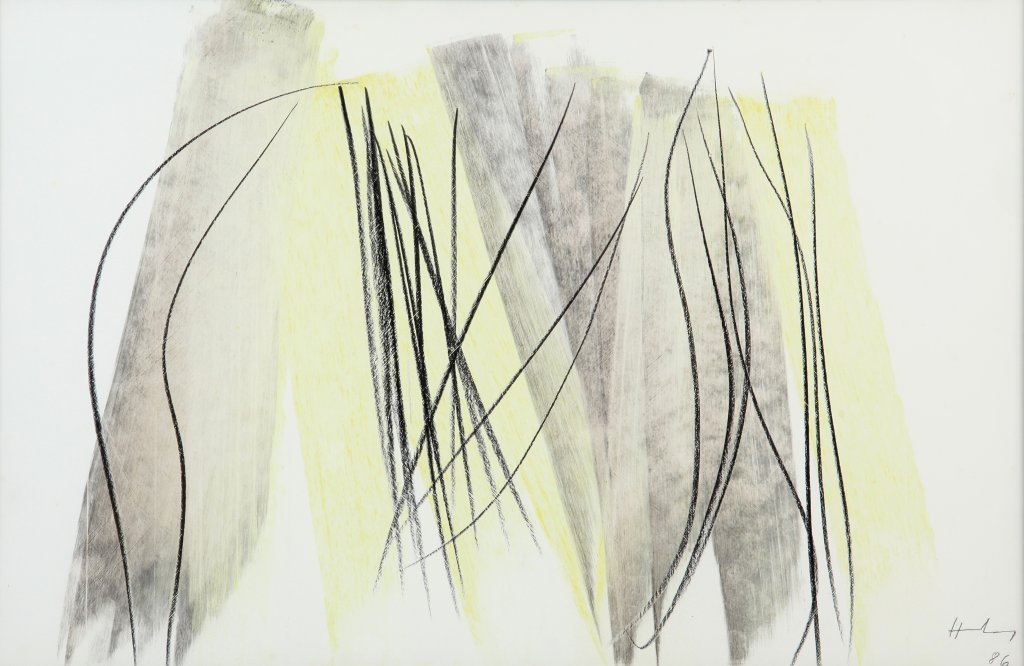 HANS HARTUNG (1904 - 1989) P8-1986-E5 1986 matita e carboncino su carta cm 32,50x49,80 firmato e datato in basso a destra firmato, datato e titolato sul retro inserito nell'Archivio Hans Hartung e Anna-Eva Bergman, come confermato per e-mail dalla Fondazione P8-1986-E5 1986 pencil and charcoal on paper in signed and dated lower right signed, dated and titled on the reverse included in Hans Hartung e Anna-Eva Bergman Archive, as the Foundation Hartung Bergman confirmed by e-mail
