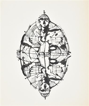 GIANBAR (Gianni Baretta) QUALE VOLTA? china acquerellata su carta, cm 33x28...