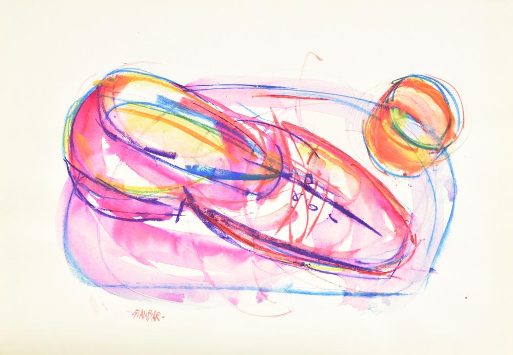 GIANBAR (Gianni Baretta) NATURA MORTA CON SCARPA tecnica mista su cartoncino,...