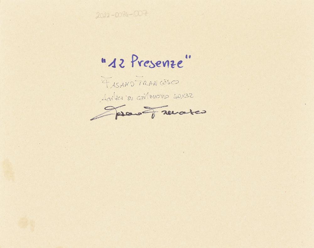 Francesco Fasano 12 PRESENZE acrilico su cartoncino, cm 40x32 sul retro:...
