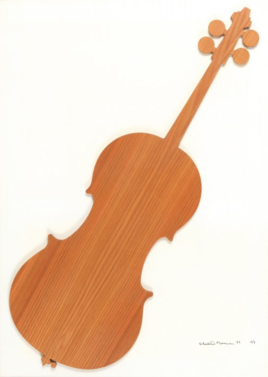 CHARLOTTE MOORMAN (1933 - 1991) ASH cello 1983 violoncello in legno su carta cm 105x75, esemplare 4/8 firmato e numerato in basso a destra sul retro: timbro e firma Francesco Conz, Verona autentica dell'artista su foto a cura dell'Archivio Francesco Conz ASH cello 1983 wood cello on paper 41,37x29,55, edition 4/8 signed and numbered lower right on the reverse: stamp and signature of Francesco Conz, Verona photo certificate from the artist, curated by Francesco Conz Archive