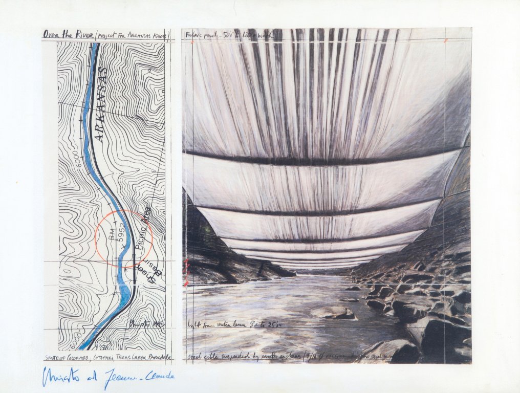 CHRISTO Over the river serigrafia su carta cm 59x80 firmato in basso a sinistra Over the river silkscreen on paper 23,25x31,52 in signed lower left