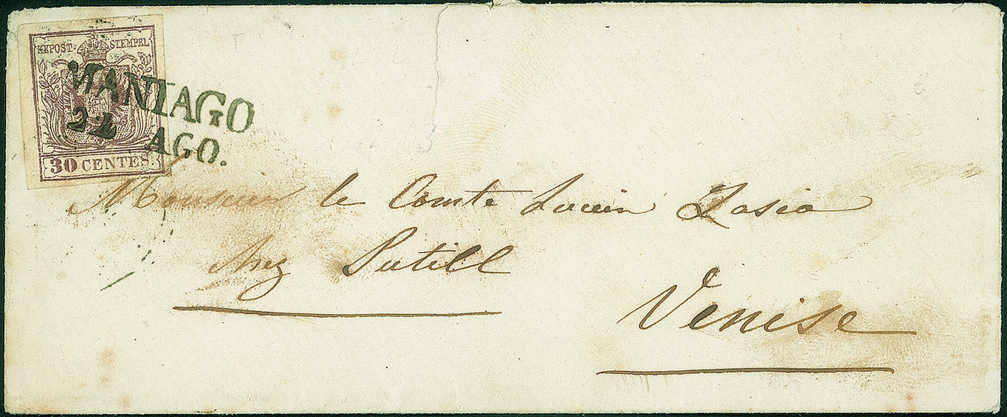 Lotto 31 | Antichi Stati Italiani - Lombardo Veneto - Maniago (stampatello dritto - P.ti 5)