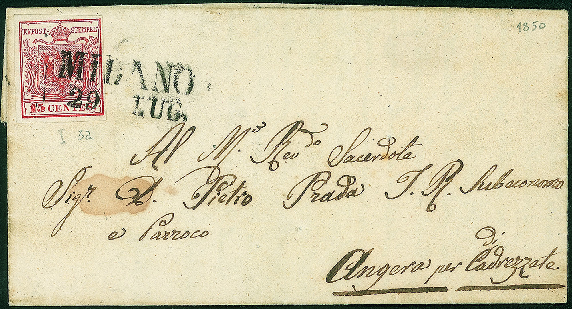 Lotto 34 | Antichi Stati Italiani - Lombardo Veneto - Milano (stampatello dritto - P.ti 6)