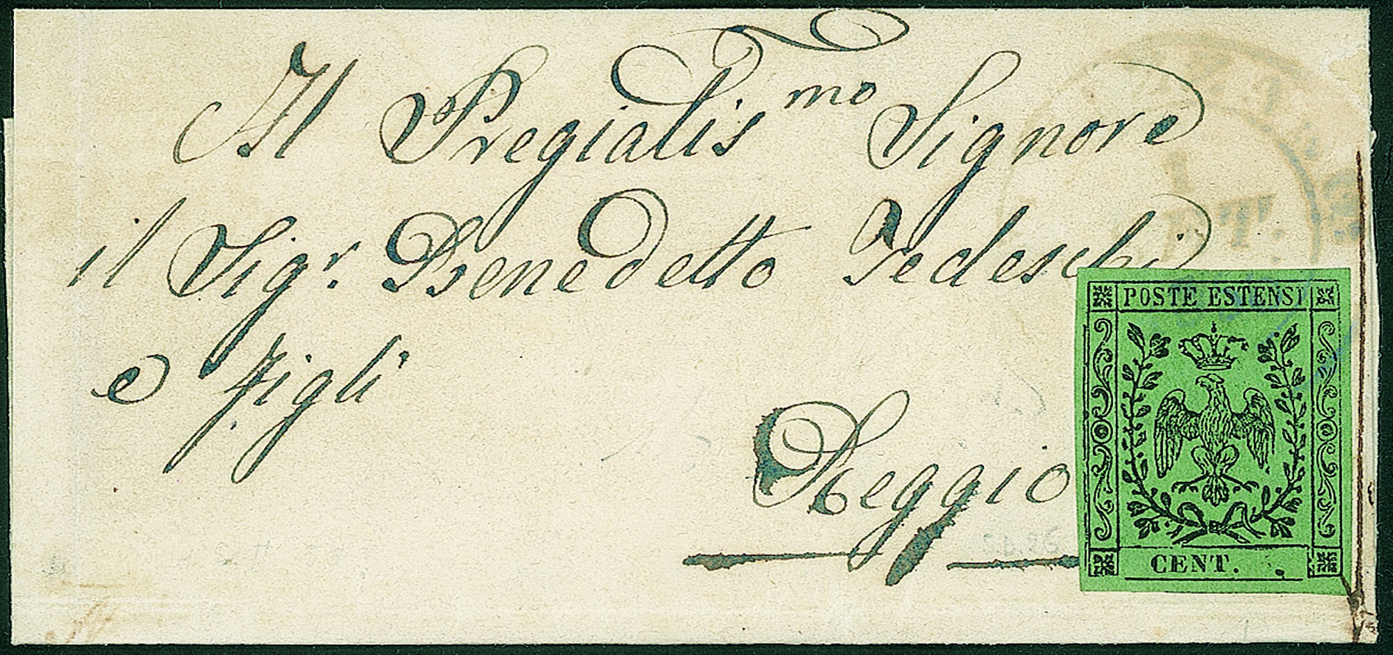 Antichi Stati Italiani - Modena - Splendida piccola lettera da Fivizzano 1.9.56Affrancata con 5 cent con errore senza cifra (8i) - di notevole pregio