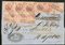 Antichi Stati Italiani - Napoli - Assicurata (3 + 5c cat.25000+)Assicurata da Rodi per Napoli affrancata con quattro esemplari del 1 grano rosa chiaro I tavola + cinque esemplari del 2 grana rosa brunastro I tavola (3 + 5c cat.25000+) - sicuramente la lettera più importante con il raro annullo ovoidale ornato di Rodi - cert. Colla