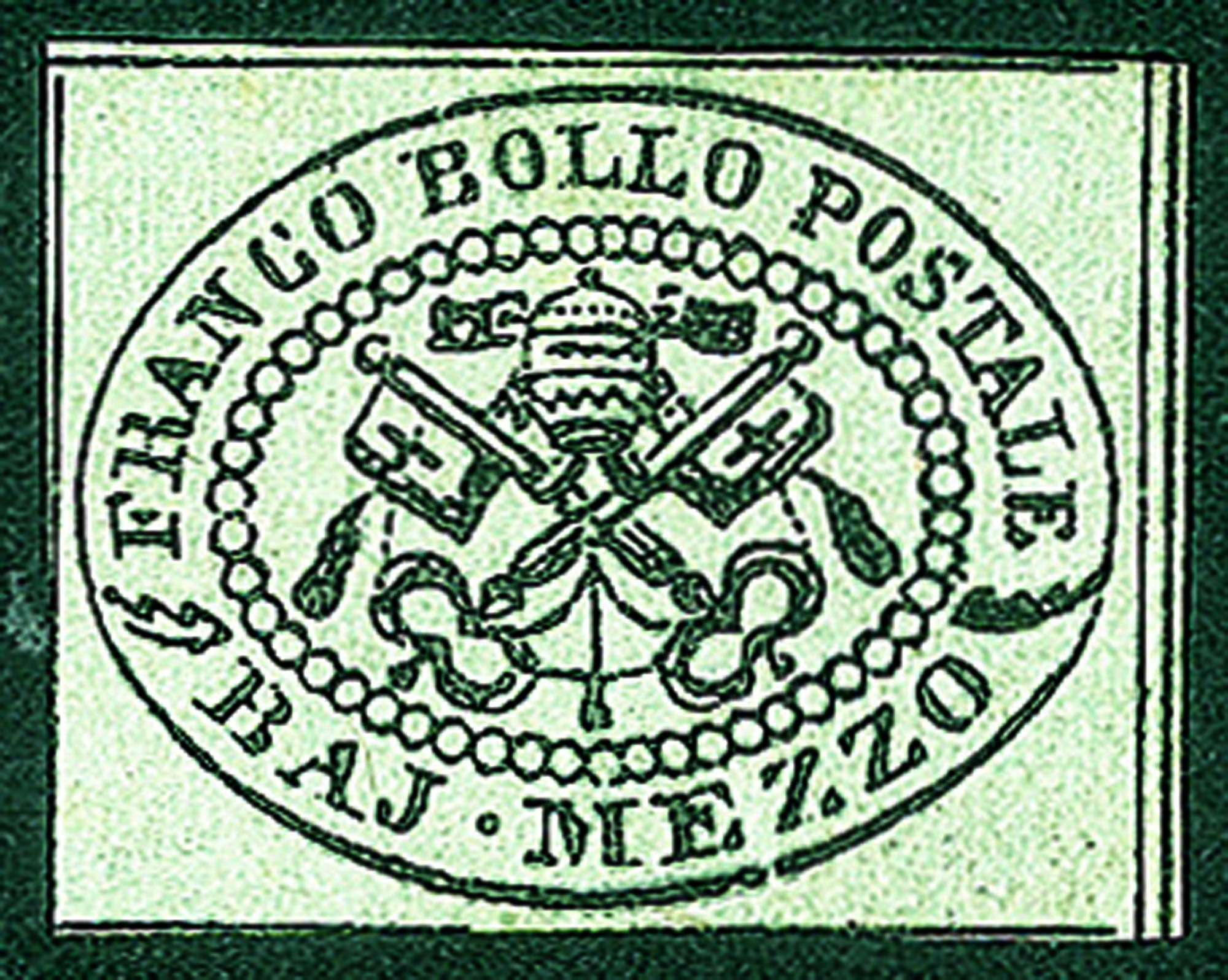 Antichi Stati Italiani - Stato pontificio - 1852 - 1/2 baj (1)Bene marginato - gomma originale - cert. Colla