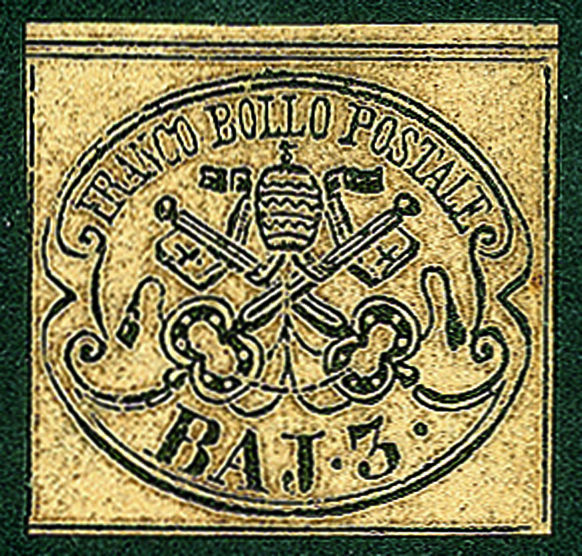 Antichi Stati Italiani - Stato pontificio - 1852 - 3 baj (4b)Carta sottile - molto fresco e bene marginato - gomma integra - cert. Sorani