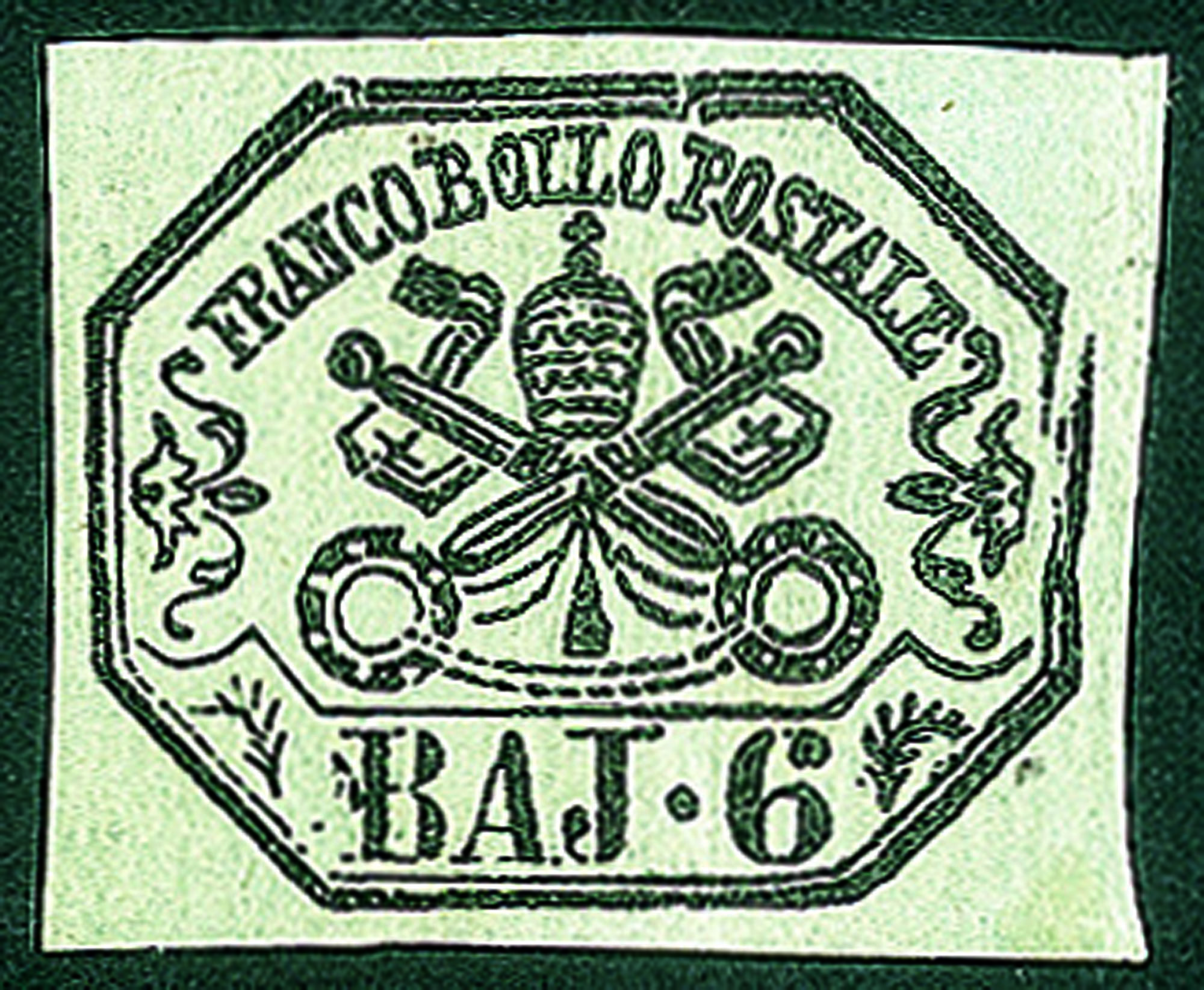 Antichi Stati Italiani - Stato pontificio - 1852 - 6 baj (7f)Con cornice rotta a destra - ampi margini e gomma originale - cert. Raybaudi