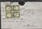 Antichi Stati Italiani - Sardegna - Letterina (13Cc)Letterina affrancata date le ridotte dimensioni a cavallo della stessa con blocco di 4 del 5 cent verde oliva giallastro - buoni margini ma naturalmente con piega sulla coppia di sinistra - Bozzolo 3.7.62 - cert. Sorani - (13Cc)
