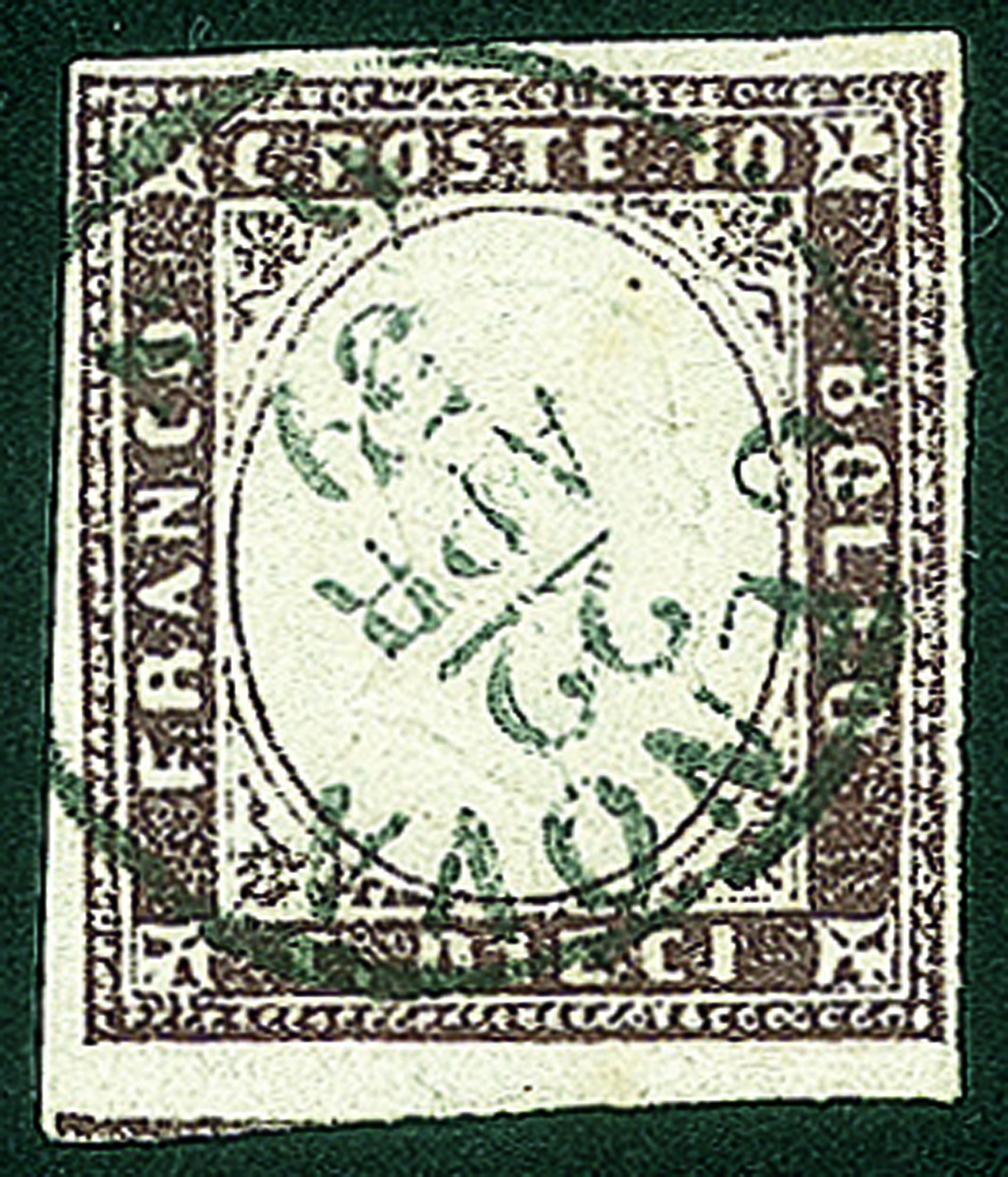 Antichi Stati Italiani - Sardegna - 10 cent (14Ac)Bene marginato - usato - firmato Raybaudi