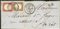 Antichi Stati Italiani - Sardegna - Annulli Savoia - 10 cent + 40 cent (14a + 16A)Letterina affrancata con 10 cent + 40 cent (14a + 16A) da Chamoux 27 AOUT.57 per Parigi - due note con questa combinazione - cert. Roumet