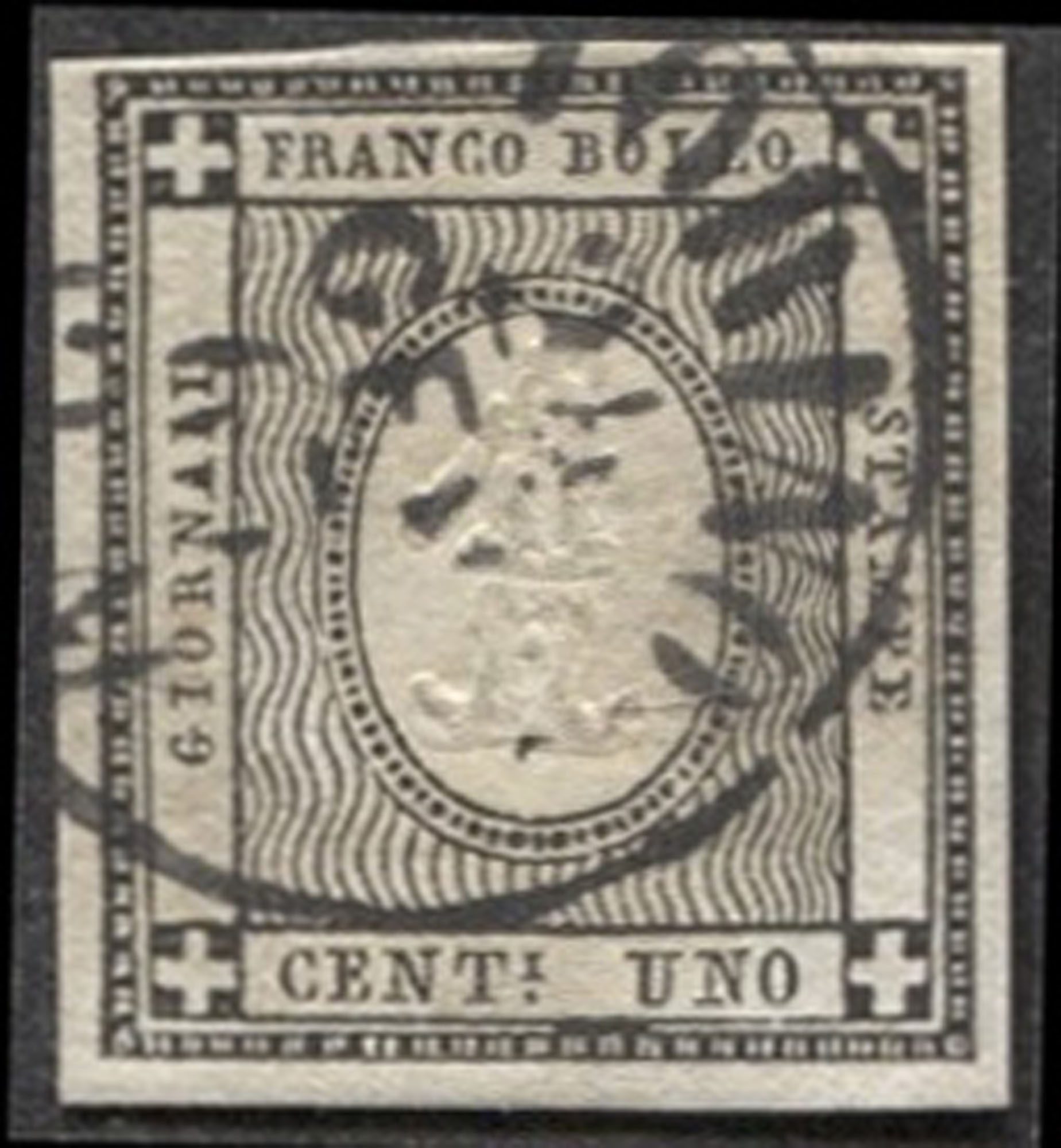 Antichi Stati Italiani - Sardegna - 1 cent (19e)Frammento con centesimo nero intenso annullato Torino 24.1.63 - di pregio - (19e)