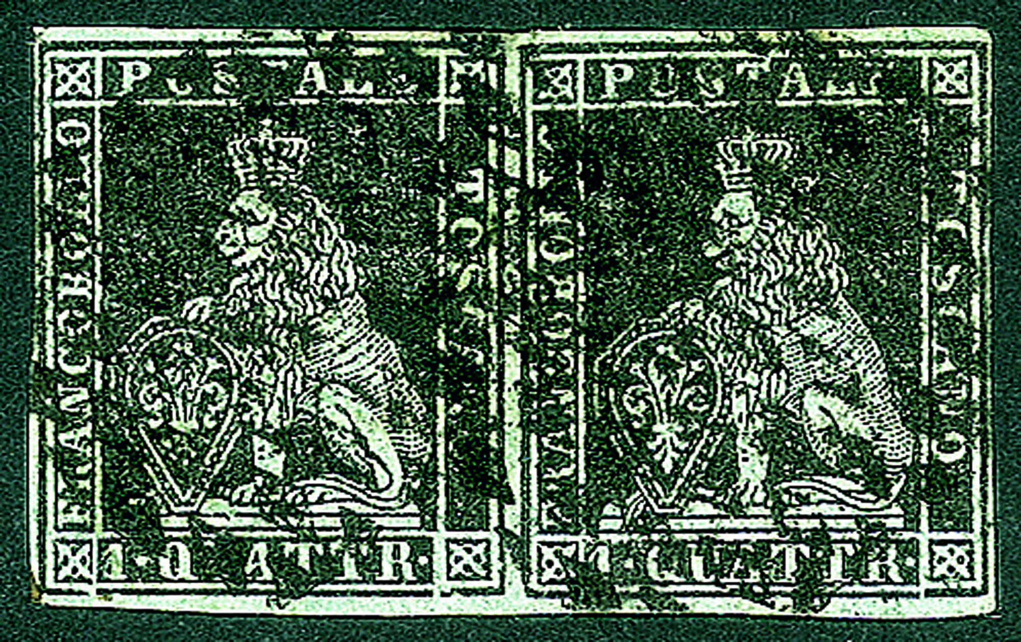 Antichi Stati Italiani - Toscana - 1852 - Coppia del 1 quattrino (1)Coppia del 1 quattrino nero su grigio (1) usata - fresca e ben marginata - cert. Enzo Diena