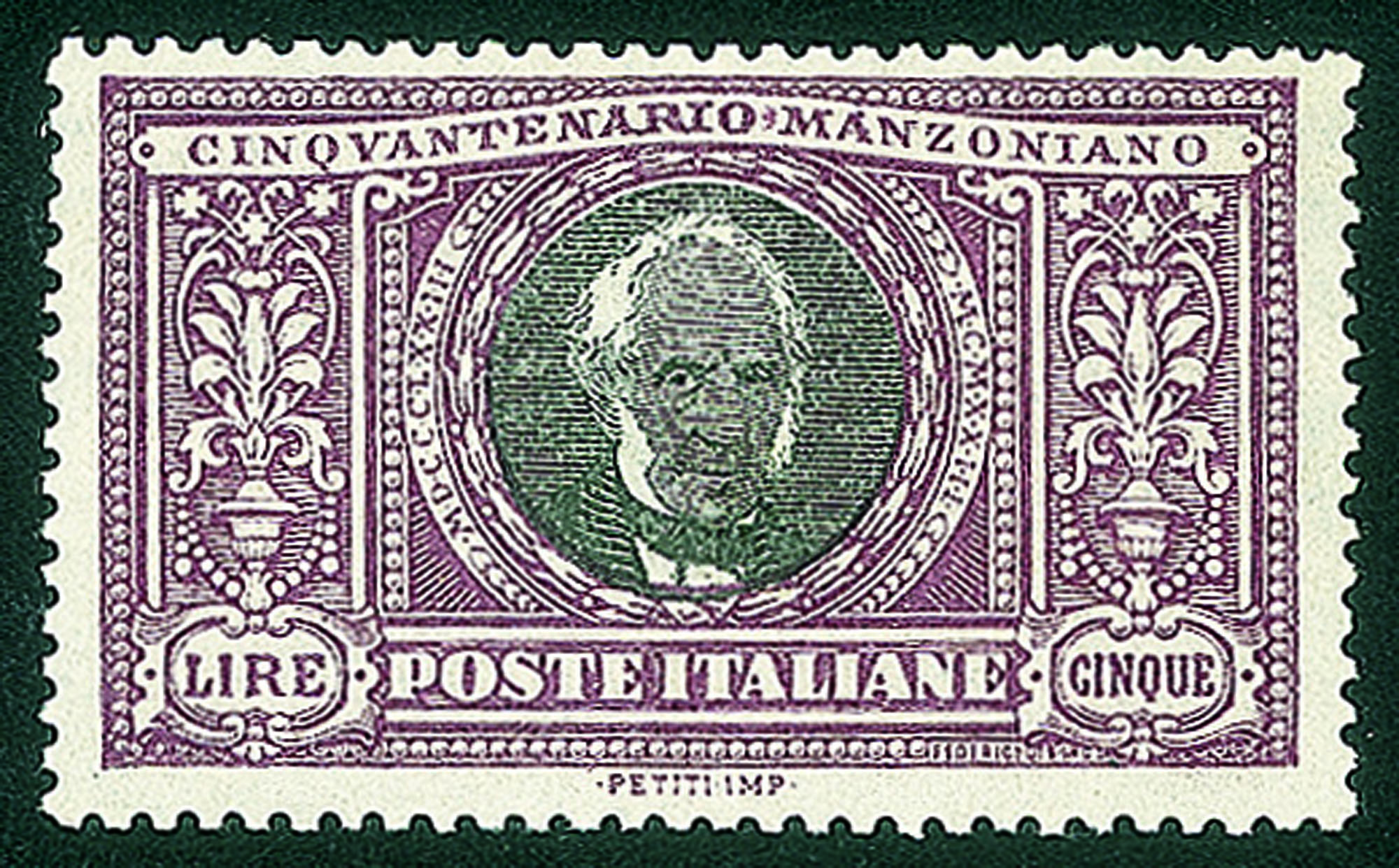 Regno - Vittorio Emanuele III - 1923 - 5 lire Manzoni (156)Molto fresco e ottimamente centrato - gomma integra