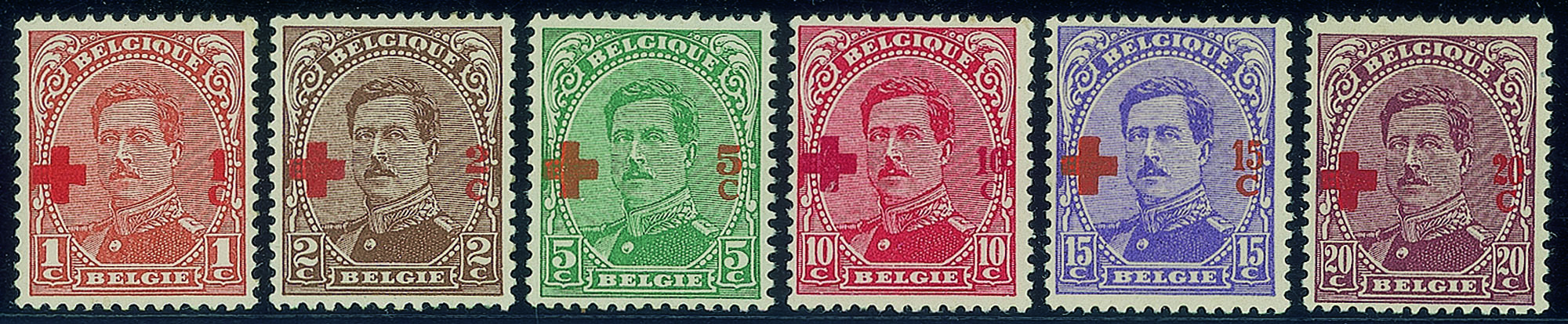 BELGIO - 1918 - Pro Croce Rossa (150/163)Serie di quattordici valori soprastampati in rosso - gomma integra - cert. Eichele