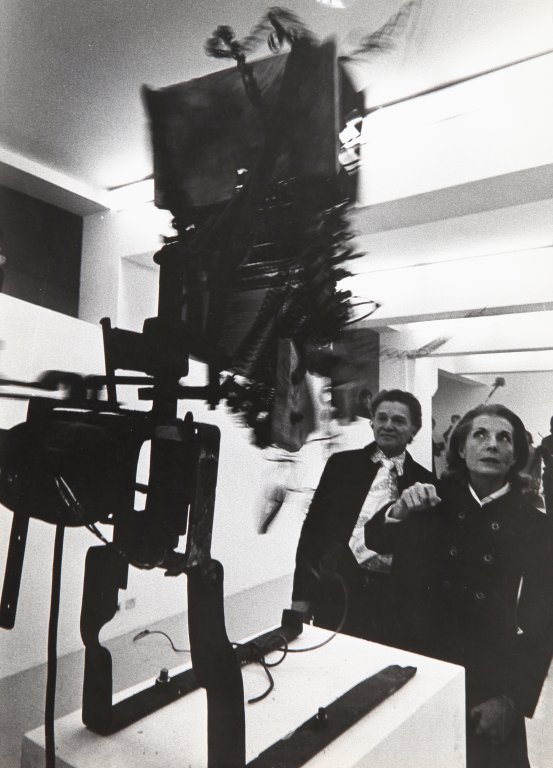 CLAUDIO ABATE (1943) Palma Bucarelli e il mercante Jolas alla mostra di Tinguely, presso Galleria L'Attico, Roma 1970 stampa ai sali d'argento, vintage 38,7x29 cm timbro sul retro del fotografo Palma Bucarelli e il mercante Jolas alla mostra di Tinguely, presso Galleria L'Attico, Roma 1970 vintage silver print 15.25x11.43 in Claudio Abate's credit stamp on the reverse