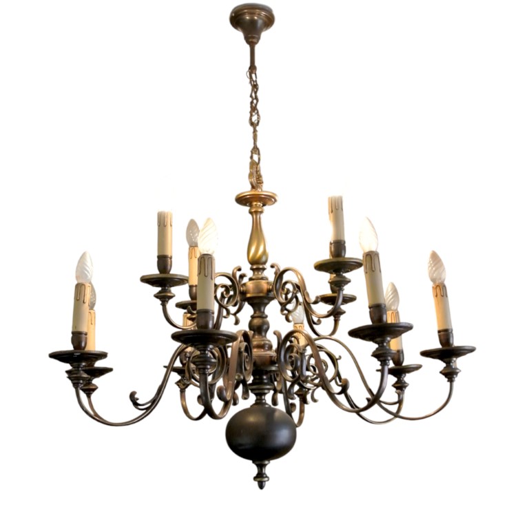 Lampadario in bronzo a dodici fiamme