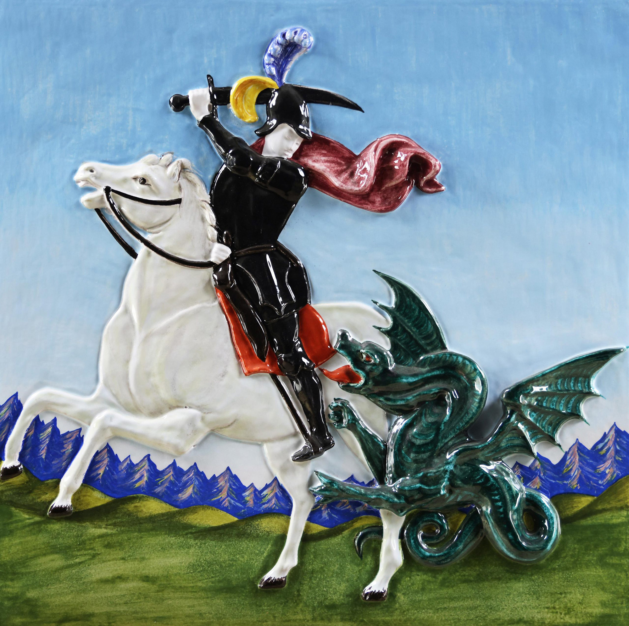 Salvo (Leonforte 1947 - Torino 2015) San Giorgio e il drago Porcellana...