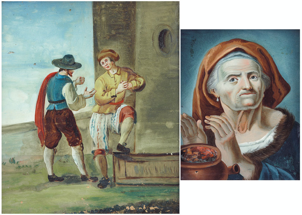 Due oli su vetro, cm 24x19 e 33,5x28.