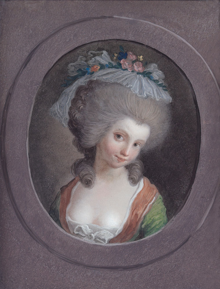 SCUOLA FRANCESE DEL XVIII SECOLO Ritratto di gentildonnaOlio su vetro, cm...