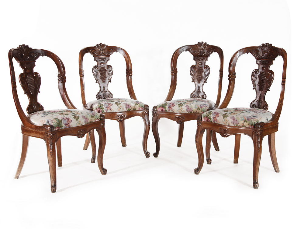 MOBILE DEL XIX SECOLO QUATTRO SEDIE CARLO X A GONDOLE IN NOCE, XIX SECOLO,...