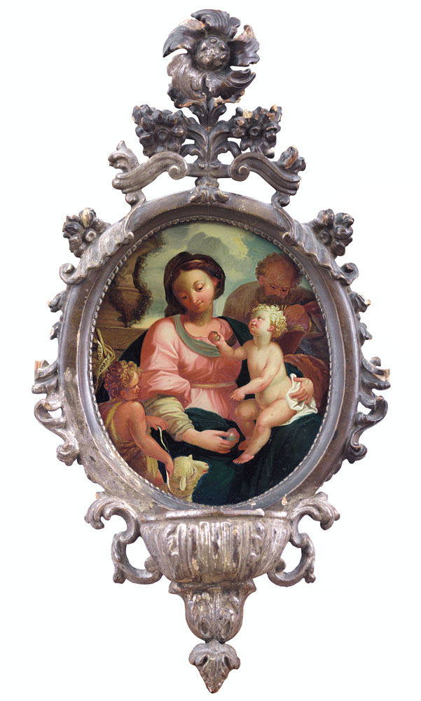 PITTORE DEL XVIII SECOLO Sacra Famiglia con San GiovanninoOlio su vetro...