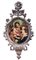 Olio su vetro ovale, cm 26x21,5; entro cornice originale ad acquasantiera in legno scolpito e dorato a mecca, dim. totali 61x32,5; sbeccature.
