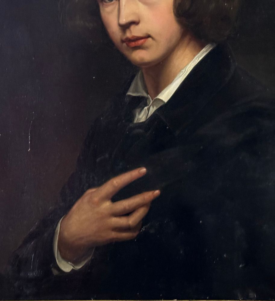 Dipinto olio su tela, periodo XX secolo scuola Italiana, raffigurante Ritratto di Victor Hugo. Dimensioni compreso cornice: 80x91 cm. Dimensioni interno cornice: 66x76 cm. Da artista anonimo. Opera in buone condizioni. Da segnalare lievi restauri nella parte bassa a destra della tela.